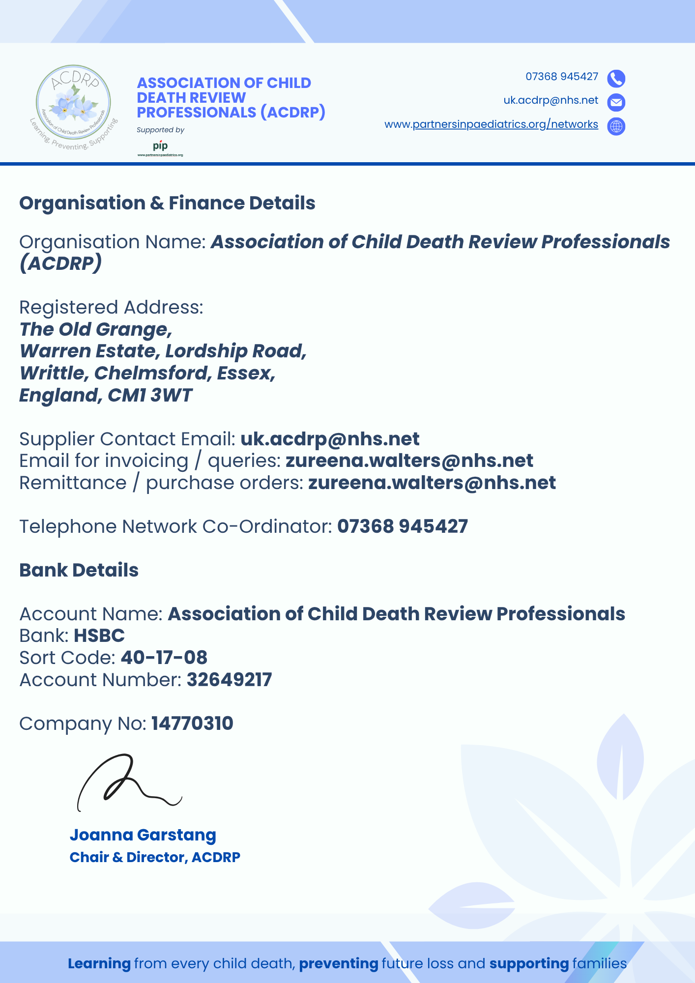 The Association of Child Death Review Professionals (ACDRP) is an independent, multi-agency network of child death review professionals, supported by NHS England.
